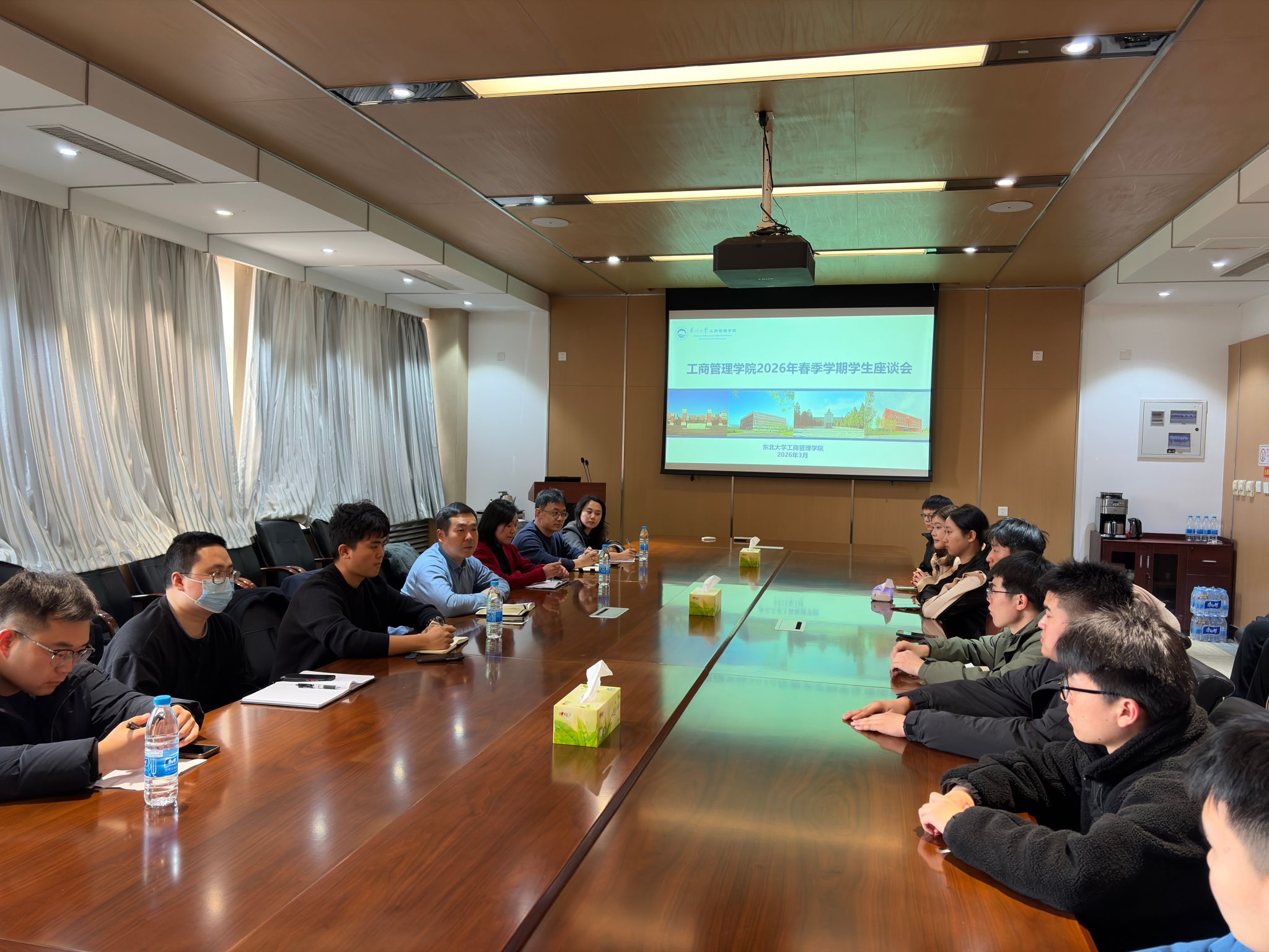 3月4日,工商管理学院在文管学馆B306室举行2026年春季学期学生座谈会。学院党委副书记、副院长(兼)吕昫光及全体辅导员与来自本硕博不同年级的21名学生代表进行了深入交流。