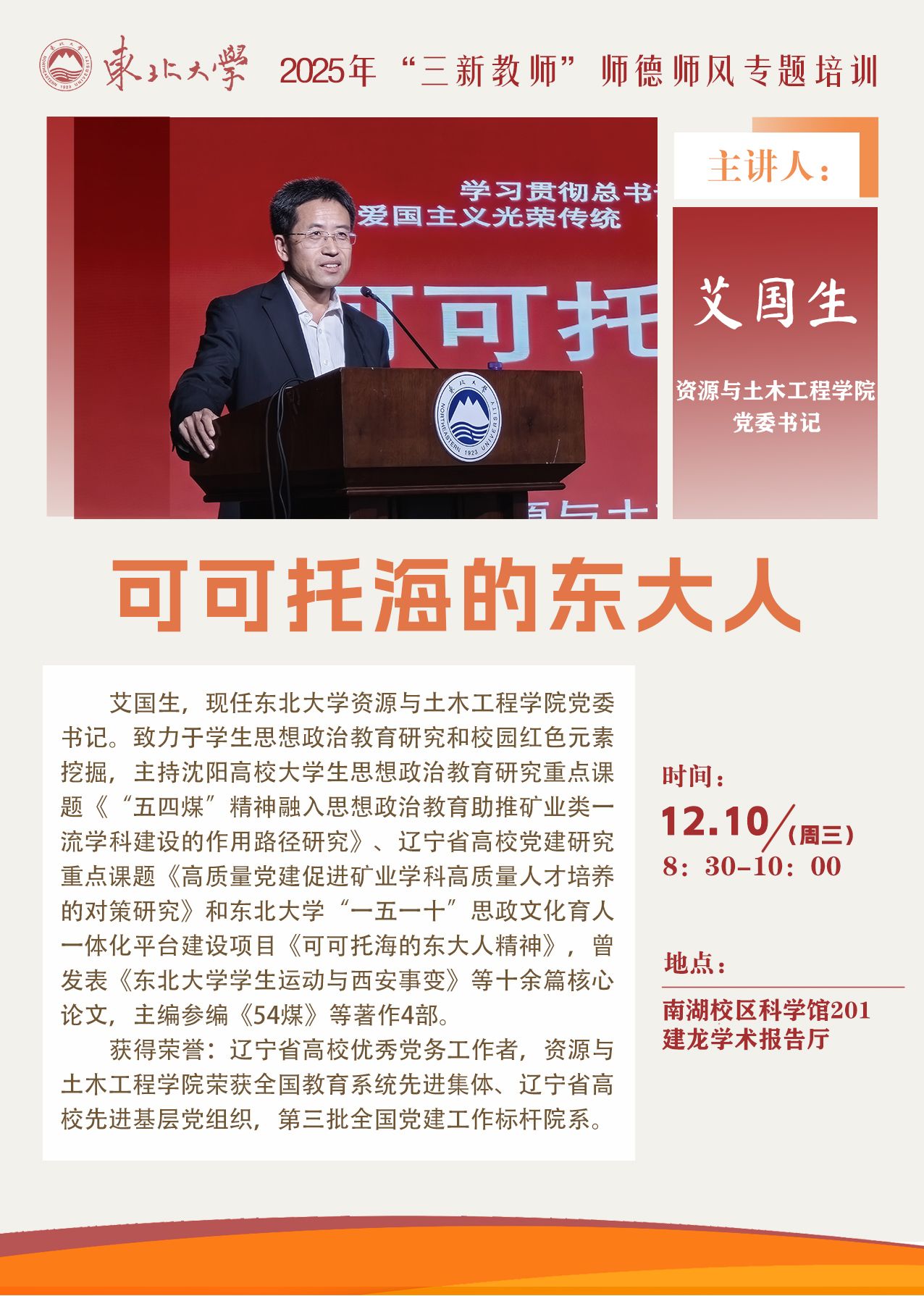 地址:南湖校区逸夫楼209室、浑南校区学生活动中心207室(同步直播)