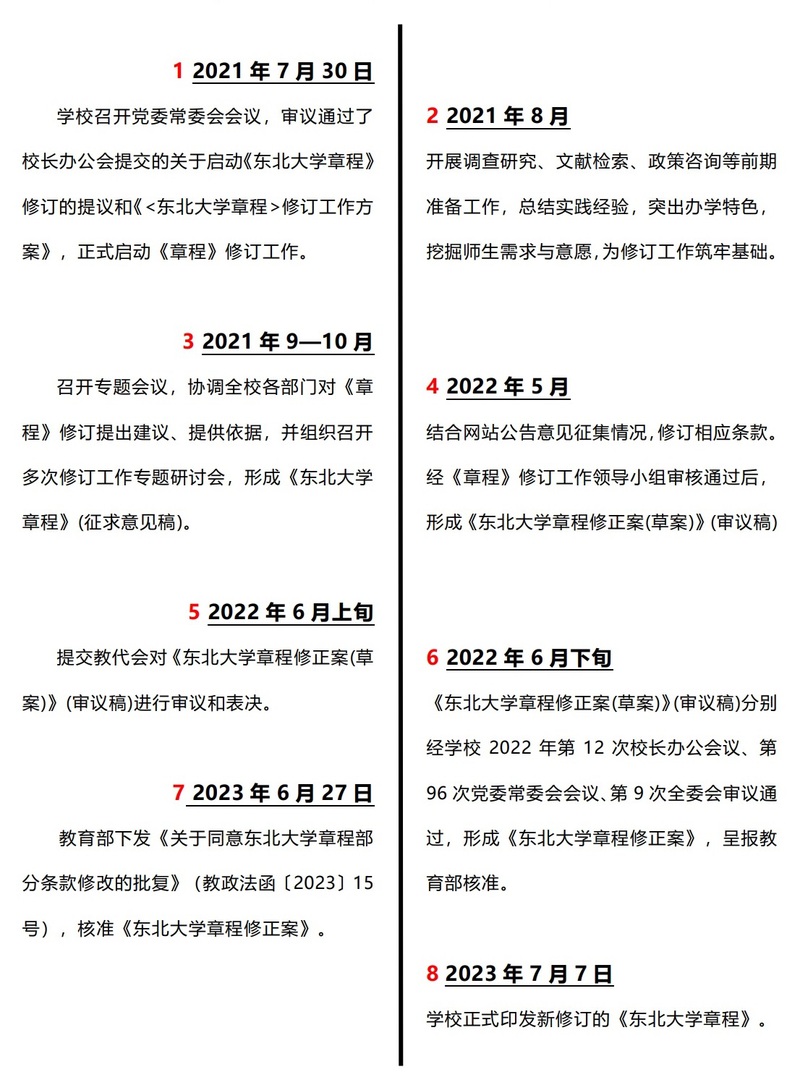 更多...原《东北大学章程》(以下简称《章程》)于2014年6月经教育部核准发布,经过多年实施,有些条款已不适应新时代党和国家对高等教育的新要求。为深入贯彻习近平新时代中国特色社会主义思想,特别是习近平法治思想和习近平总书记关于教育的重要论述,贯彻落实十八大以来党中央、国务院就高等教育改革发展作出的一系列新的决策部署,贯彻落实全国教育大会、全国高校思想政治工作会议等精神,进一步提高学校治理体系和治理能力现代化水平,...